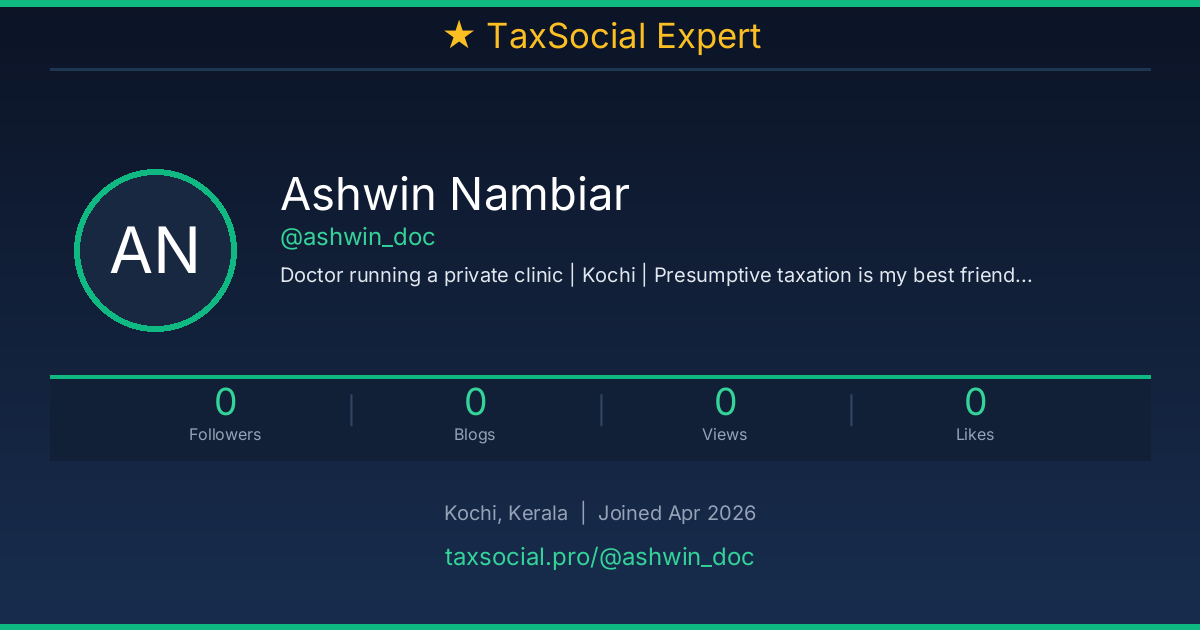 Doctor running a private clinic | Kochi | Presumptive taxation is my best friend. Also invest in mutual funds.