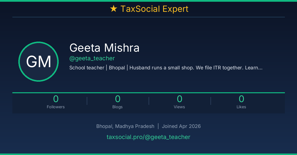 School teacher | Bhopal | Husband runs a small shop. We file ITR together. Learning about HRA and 80C here.
