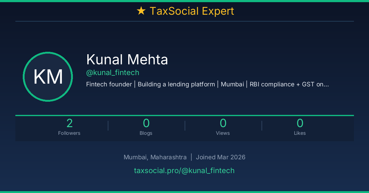 Fintech founder | Building a lending platform | Mumbai | RBI compliance + GST on financial services = my daily life.