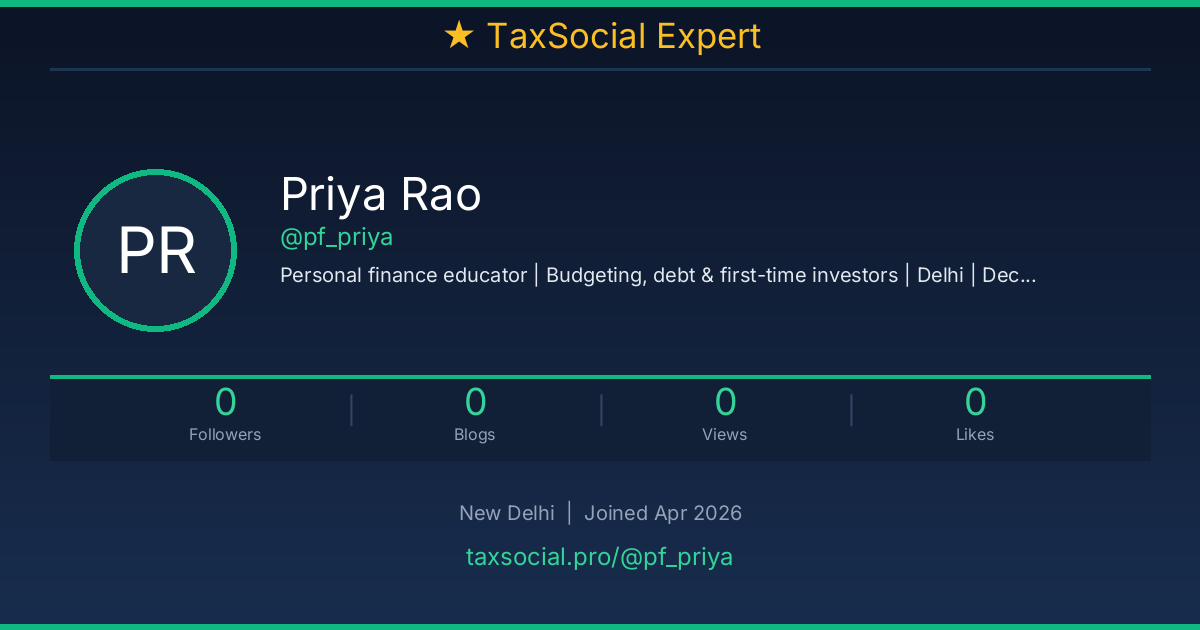 Personal finance educator | Budgeting, debt & first-time investors | Delhi | Decoding money for salaried India