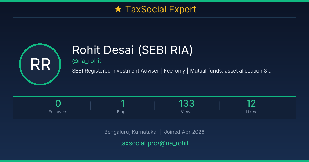 SEBI Registered Investment Adviser | Fee-only | Mutual funds, asset allocation & tax-efficient investing | Bengaluru
